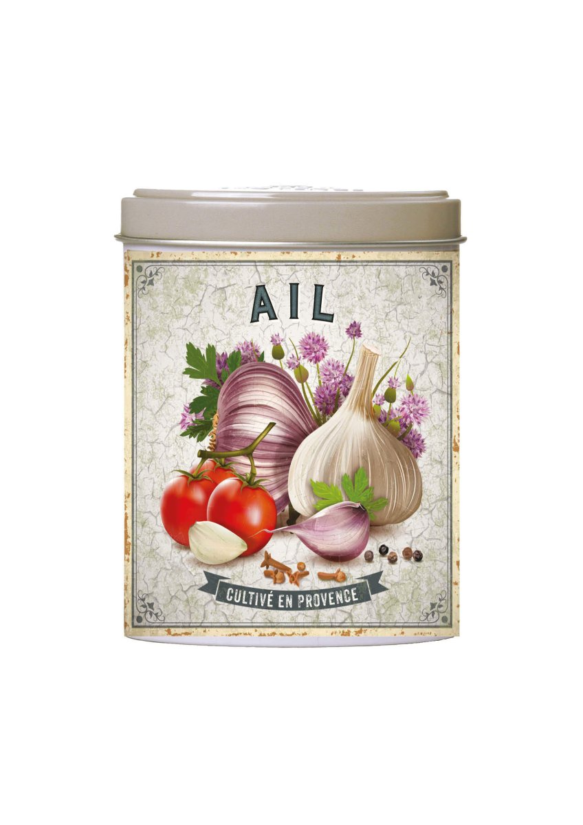 Boite verseuse – Sel de Camargue au Thym & à l’ail 120 g