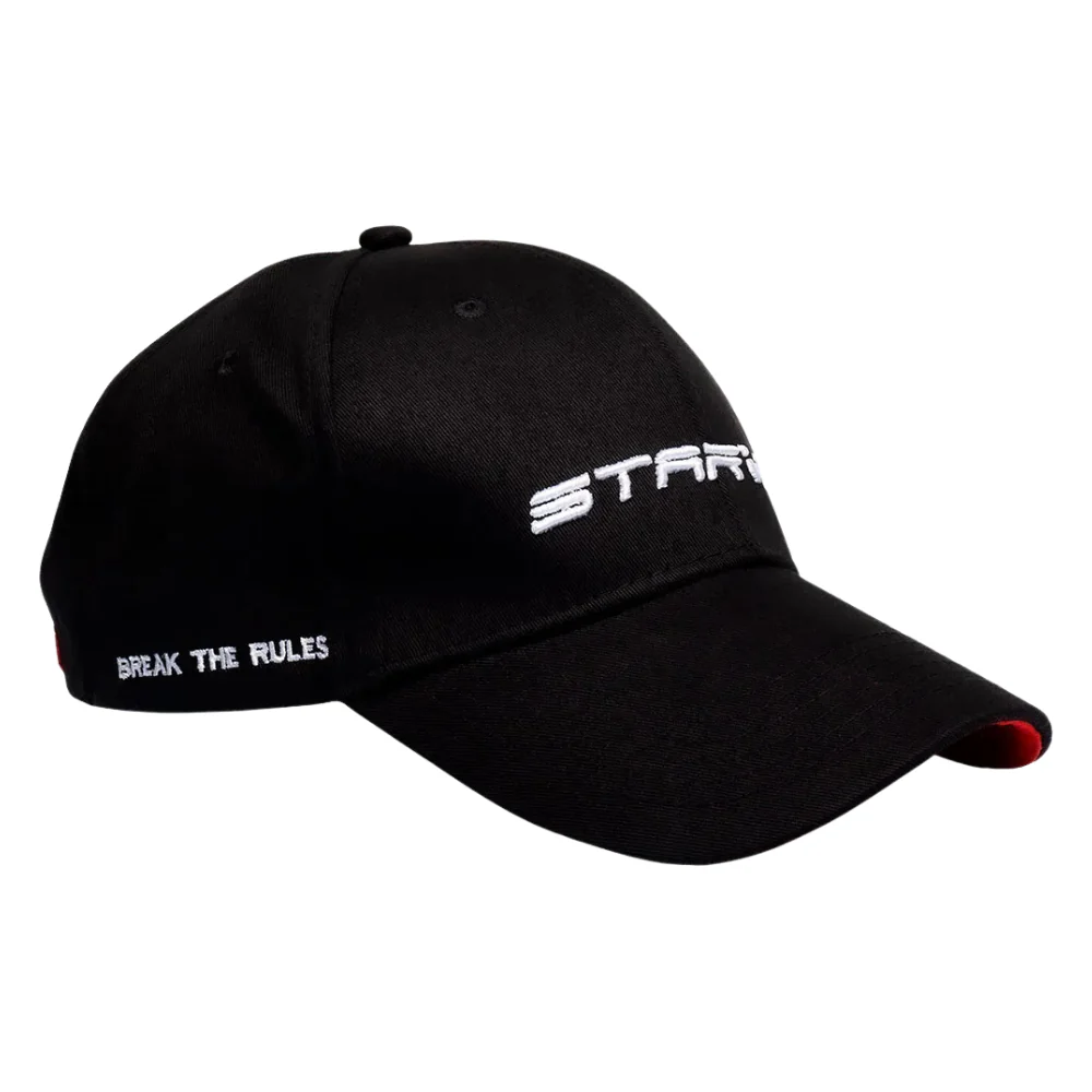 Son design noir sobre est relevé par le logo Starvie brodé à l’avant et la signature “Break the Rules” discrètement placée à l’arrière, pour une identité forte.