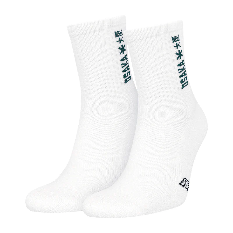 Ce lot de deux paires de chaussettes hautes allie confort et sobriété avec leur design entièrement blanc, rehaussé du logo Osaka vert foncé sur le mollet.