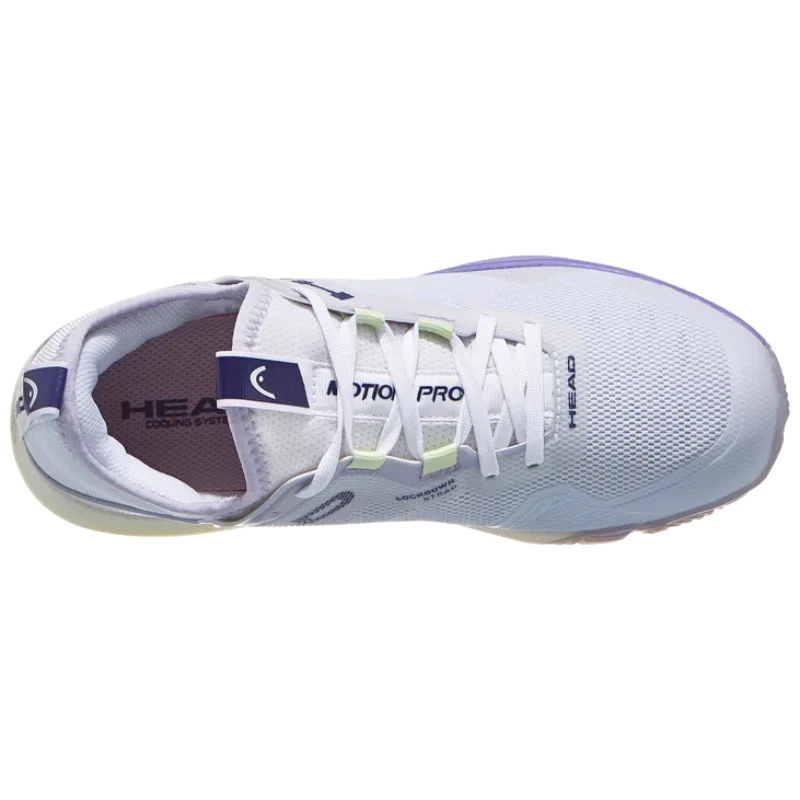 Découvrez les chaussures de padel pour femme Head Motion Pro Blanc/Violet, un modèle qui allie parfaitement style, confort et performance pour les joueuses qui veulent briller sur le court.