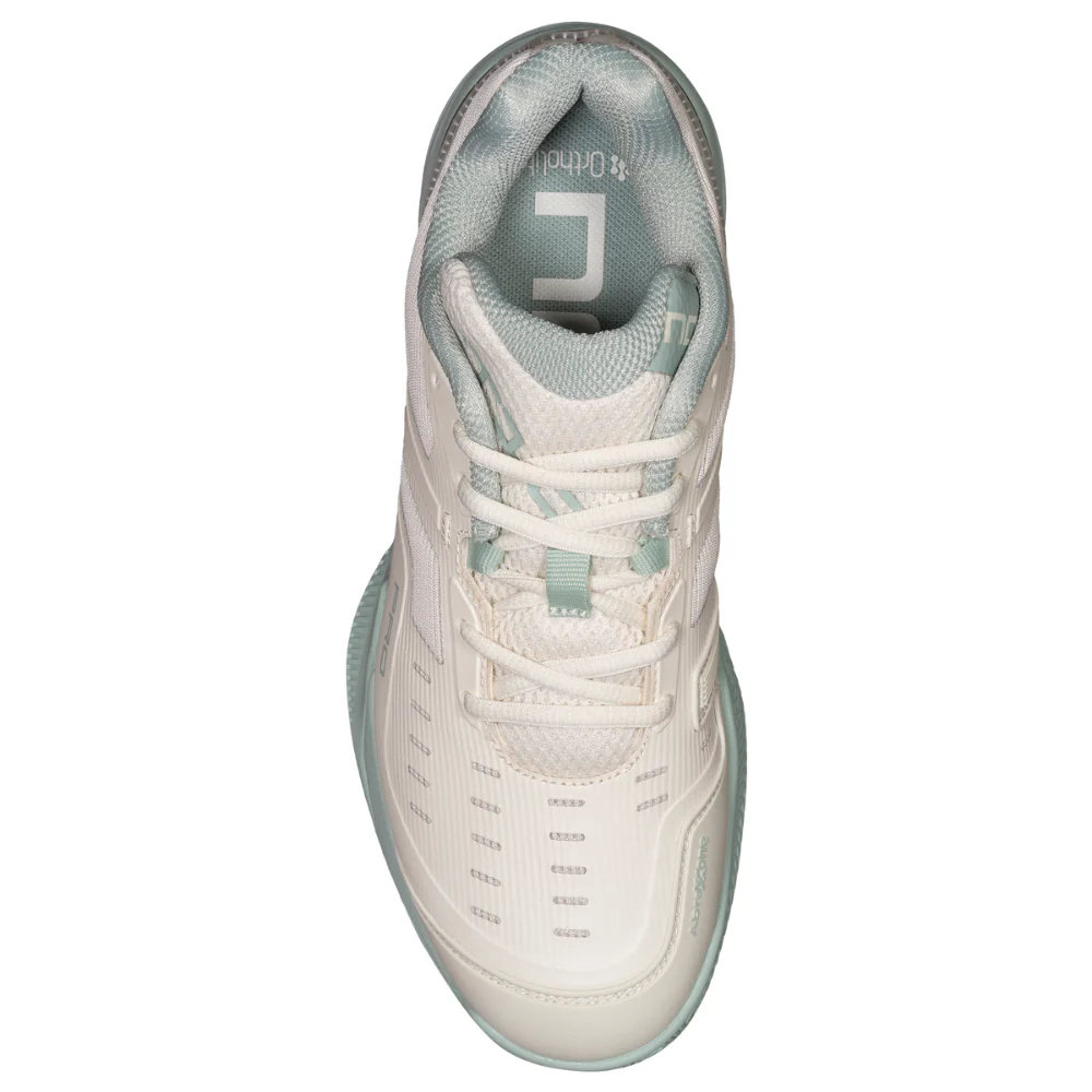 Cette version féminine se distingue par son coloris Beige raffiné, rehaussé de touches vert clair qui lui confèrent une allure fraîche et moderne sur le court.