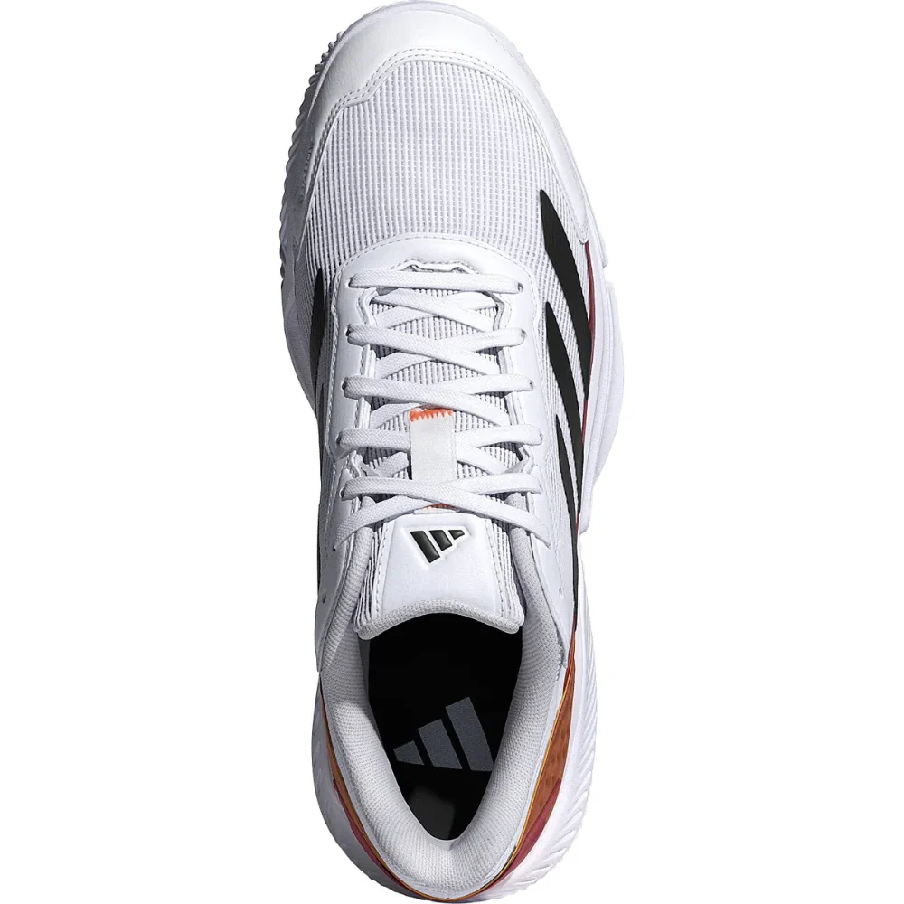 Adidas présente les chaussures de padel Courtquick Blanc/Orange, un modèle alliant élégance, stabilité et performance.