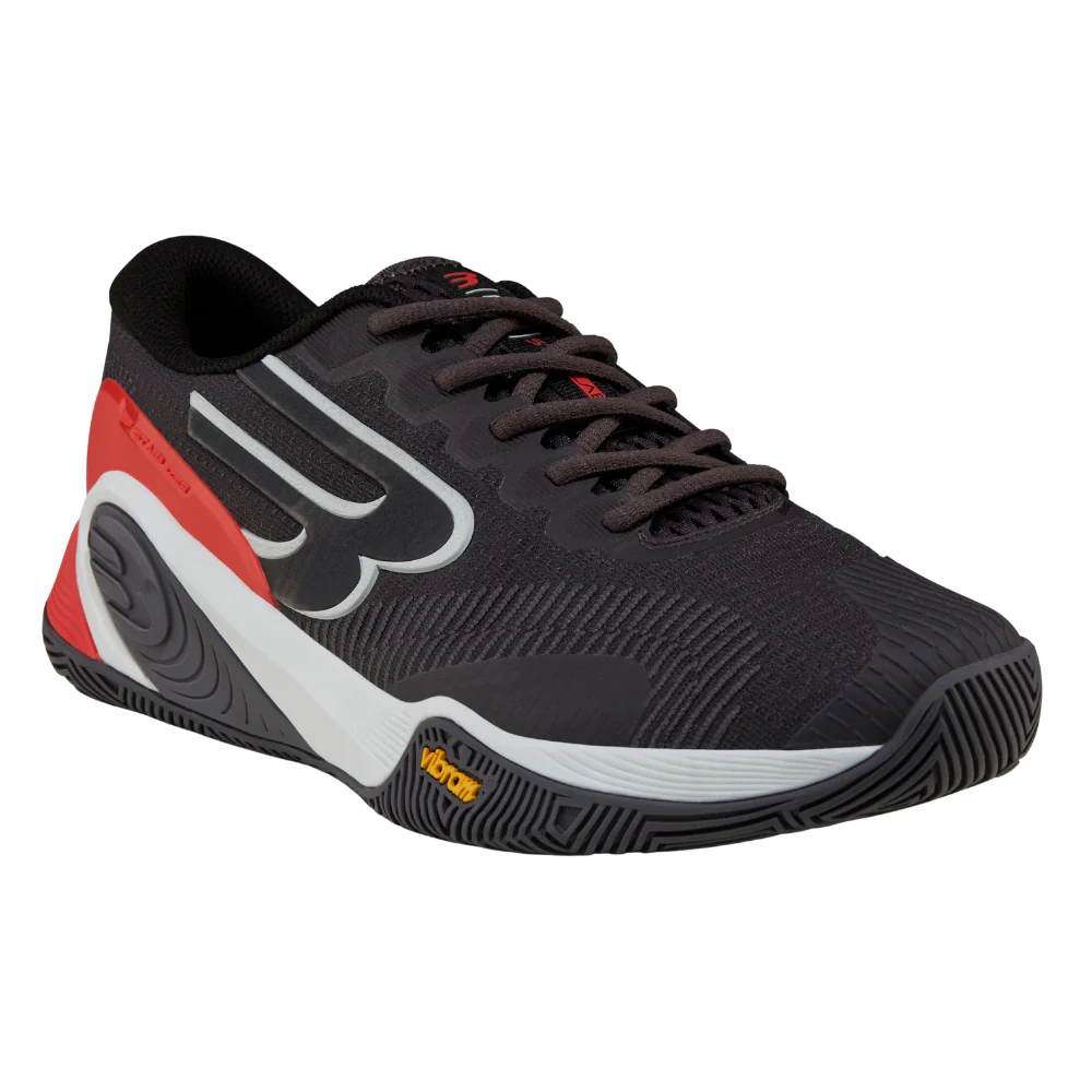 Affirmez votre puissance sur la piste avec les chaussures de padel Bullpadel Hack Vibram 26I Noir, une version au caractère intense qui associe l’élégance du noir à des touches rouges dynamiques et percutantes.