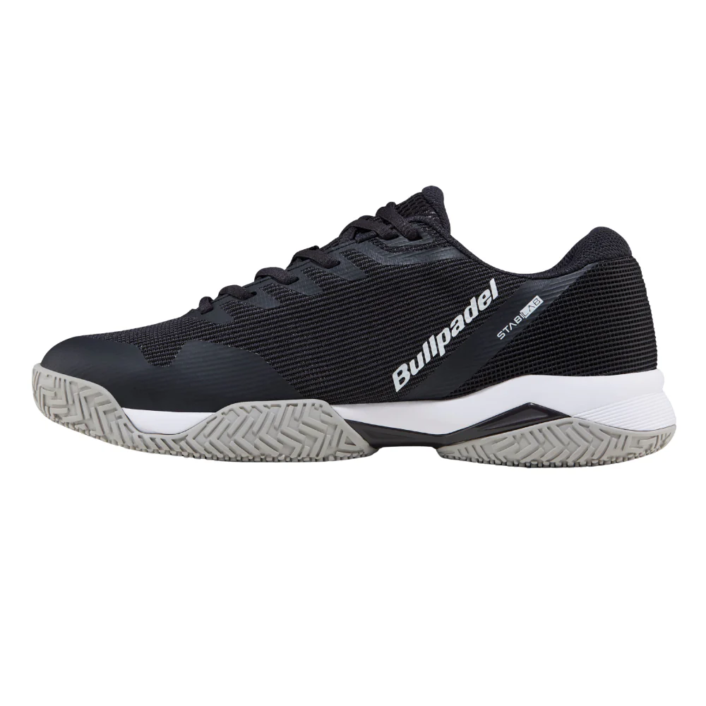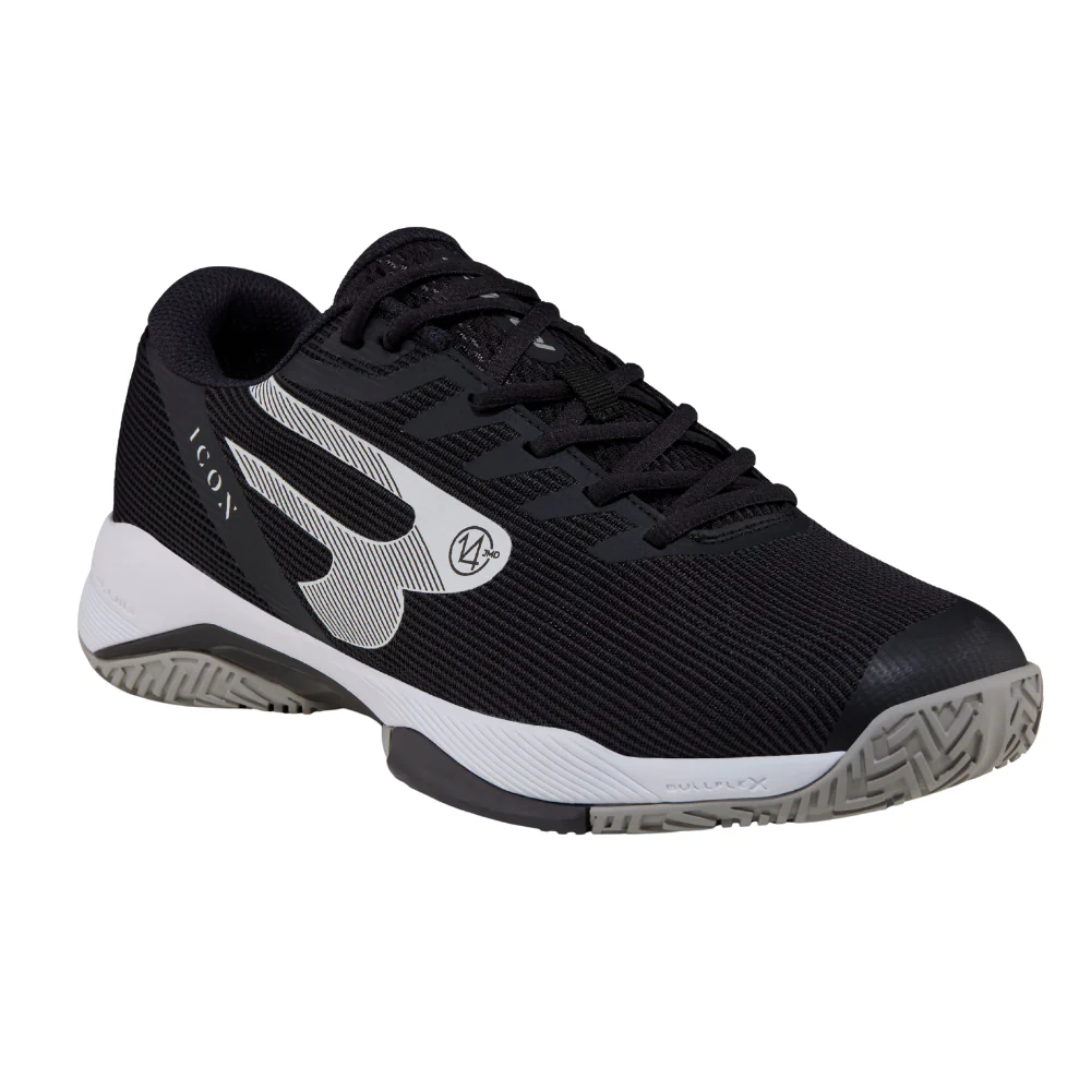 Les chaussures de padel pour homme Bullpadel Icon 26I Noir s’imposent par un design sobre et moderne mêlant un noir élégant à des détails blancs contrastés.