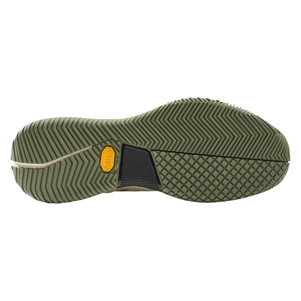La semelle Vibram, reconnue pour sa durabilité et son confort d’adhérence, s’associe au système Hybrid 360, combinant chevrons et mini-crampons pour une polyvalence totale sur tous types de terrains.