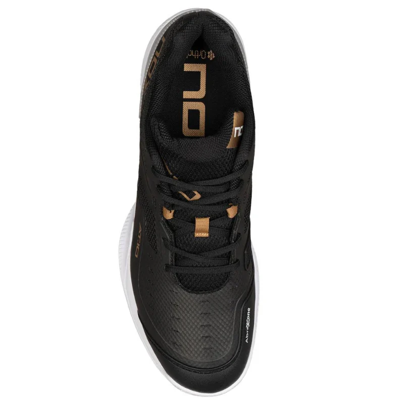 Nox dévoile les nouvelles chaussures AT10 Pro, arborant un design élégant en noir et doré.