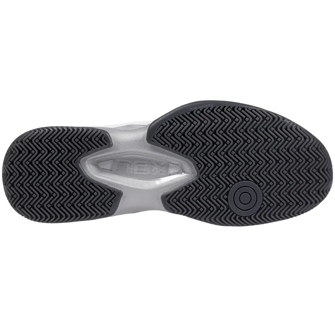 Enfin, la semelle extérieure, conçue avec un motif de chevrons et de mini-crampons, procure une adhérence impeccable sur tous les types de surfaces de padel.