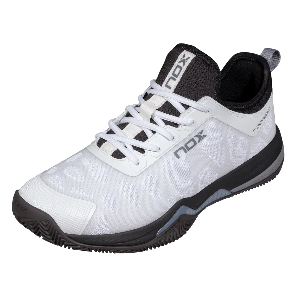 Découvrez la nouvelle chaussure de padel Nox la Nerbo Noir/Blanc un modèle idéal pour les joueurs à la recherche d’un confort optimal et de légèreté.