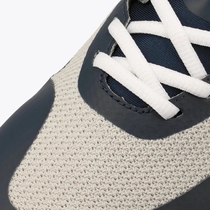 Une paire plutôt sobre, arborant des teintes grises et bleu marine, caractérisée par sa polyvalence et sa légèreté.