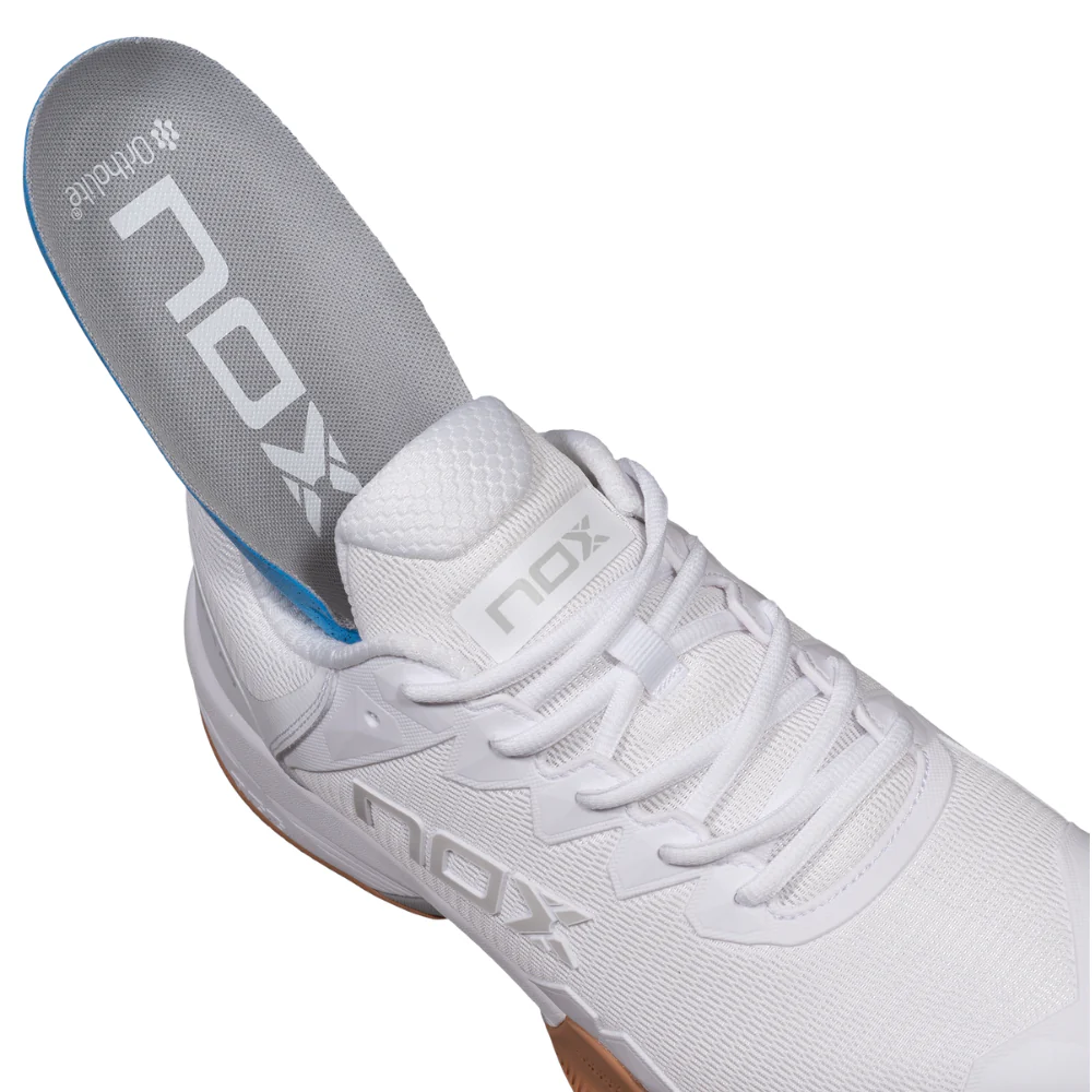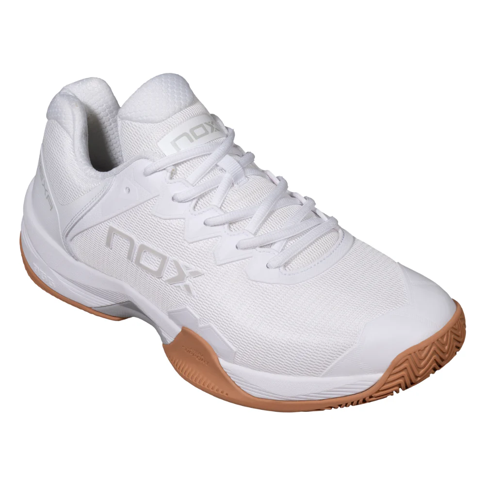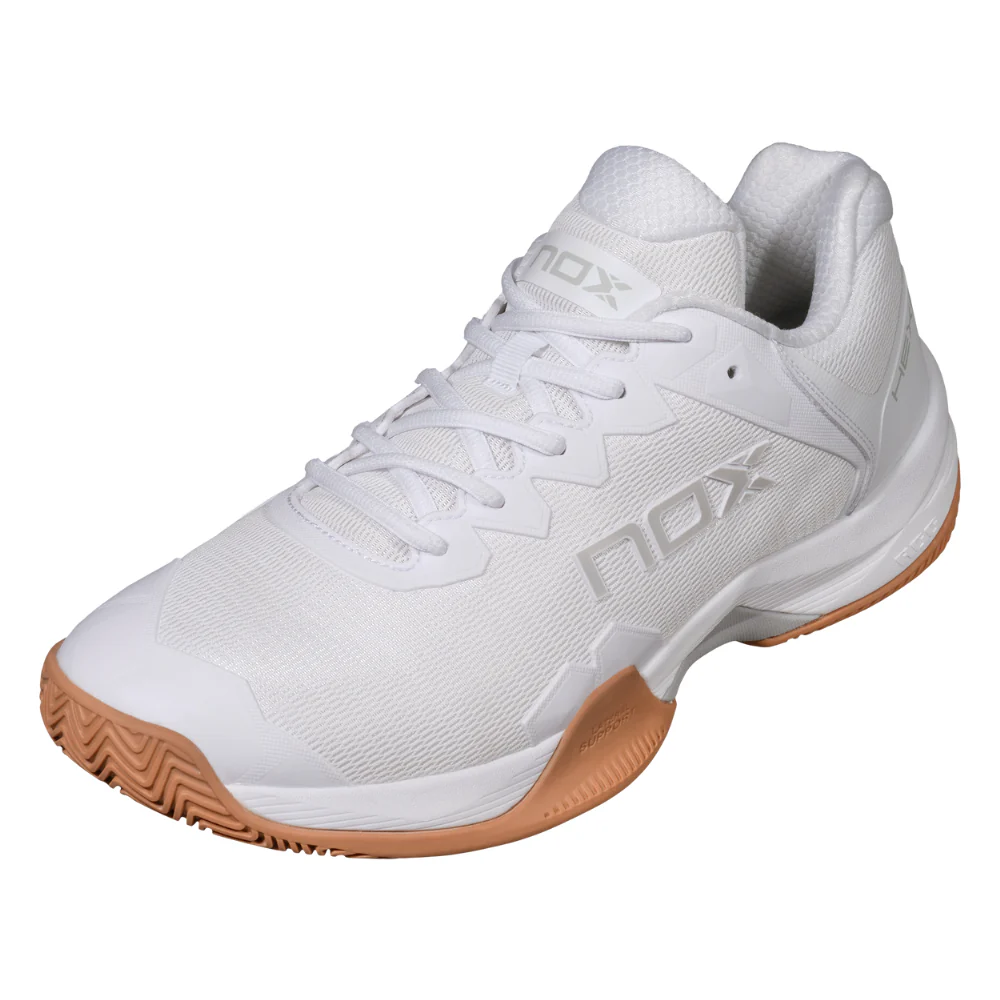 Découvrez les nouvelles chaussures de padel Nox présente les chaussures de padel ML10 Hexa Blanc, signées par le joueur professionnel Miguel Lamperti.