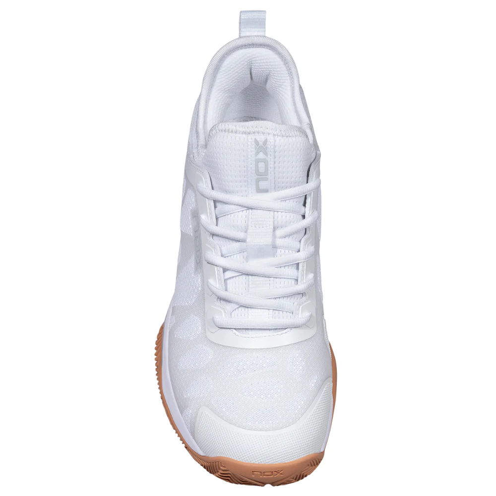 Découvrez les nouvelles chaussures de padel Unisexe Nox Nerbo, un modèle Blanc éclatant doté d’une semelle marron, conçu pour le confort immédiat et la performance technique.