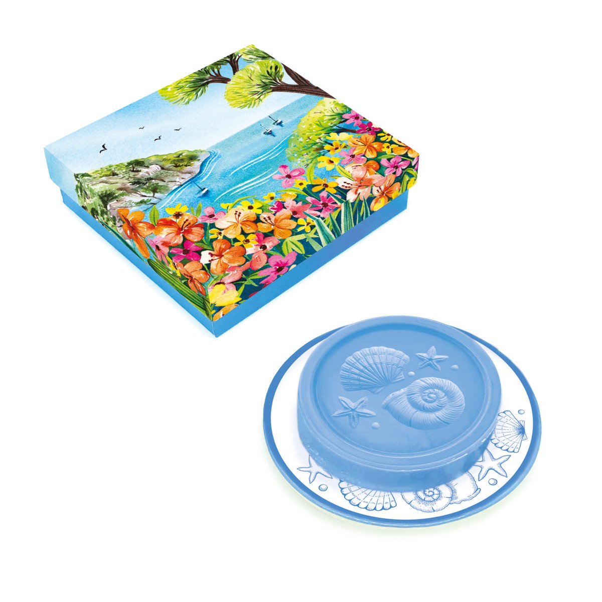 Retrouvez notre Coffret avec porte-savon en céramique accompagné de notre Savon Marine. Idéal pour un petit geste qui sent bon la Méditerranée !