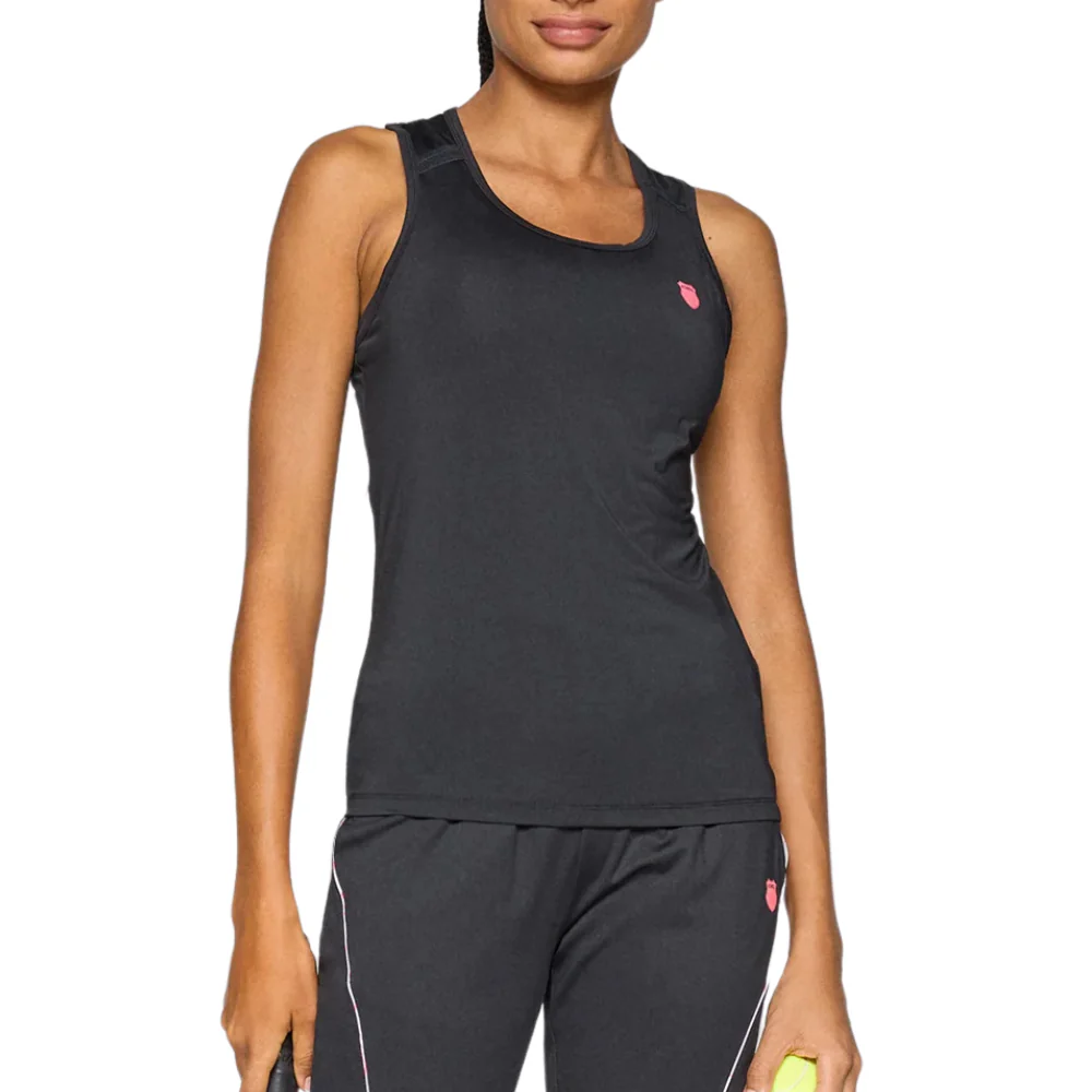 K-Swiss présente le débardeur Hypercourt Singlet Noir pour femme, conçu pour allier légèreté et performance sur le court.