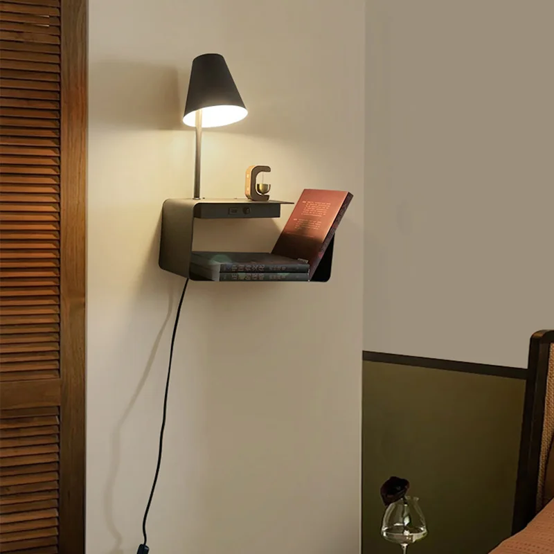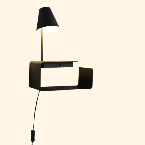 Description de cette étagère murale LED de chevet avec abat-jour – Élégance et Éclairage Fonctionnel