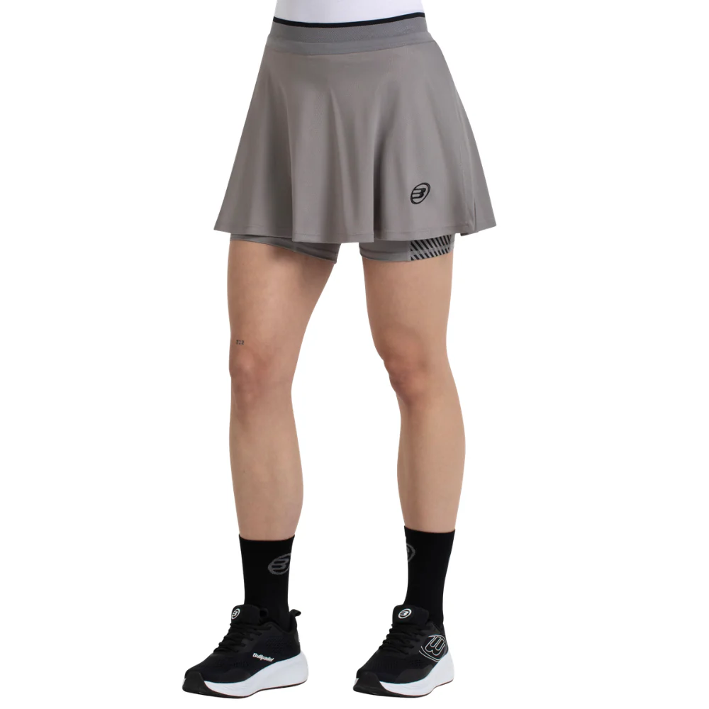 Bullpadel présente la jupe Tesan Grise pour femme, conçue pour offrir confort et style sur le terrain.