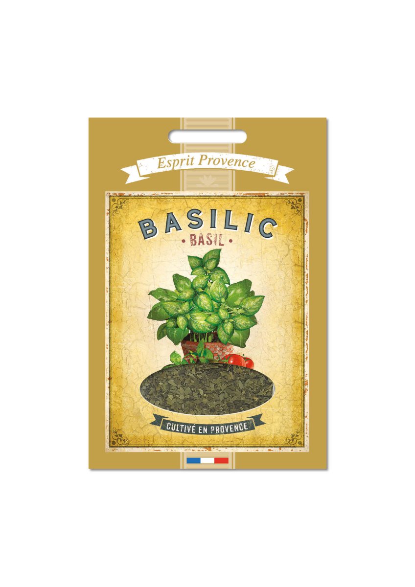 Plante aromatique de Provence, le Basilic ou Pistou en Provençal, est un grand classique de la cuisine du Sud. Synonyme de la Provence, le Basilic se marie à merveille avec de nombreuses recettes : salades, tomates, viandes blanches ou soupes, le Basilic sait trouver sa place !