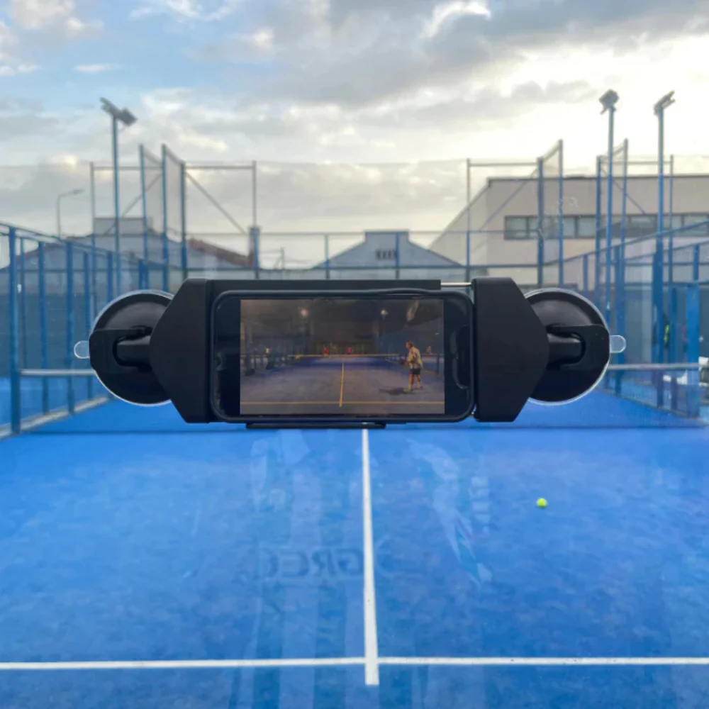 Ce produit est équipé d’un système de fixation sécurisé, conçu pour une adhérence optimale sur les vitres des terrains de padel. Ses anneaux ventousés facilitent l’installation et le démontage.