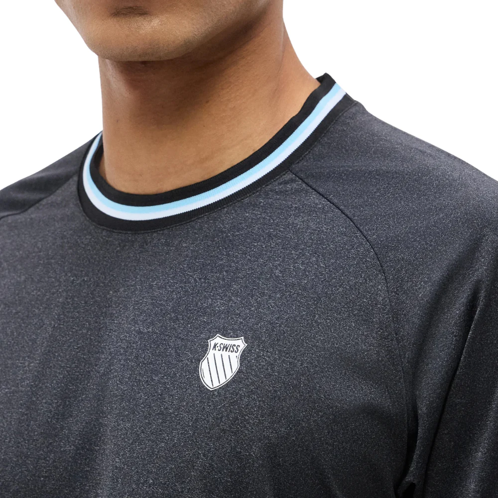 K-Swiss présente le t-shirt Hypercourt Mélange Crew, un modèle pensé pour les joueurs qui exigent confort, fiabilité et durabilité, même lors des sessions les plus engagées.