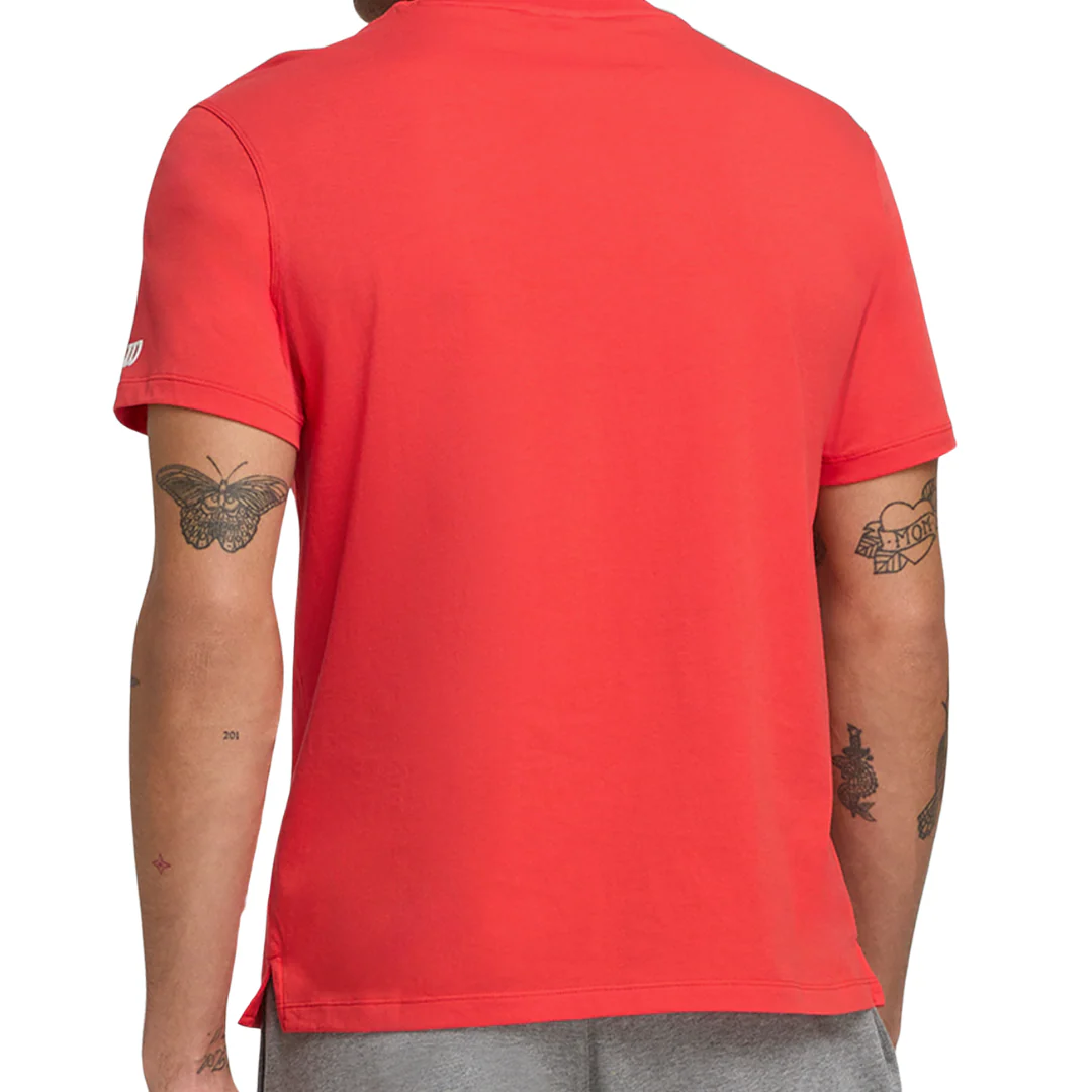 De couleur rouge, le t-shirt est aux couleurs de Wilson.