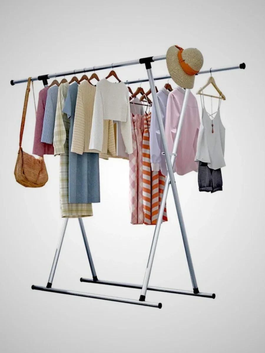 - Caractéristiques : Design pliable pour un rangement facile, barres séparées pour les vêtements clairs et foncés, design en X pour plus de stabilité